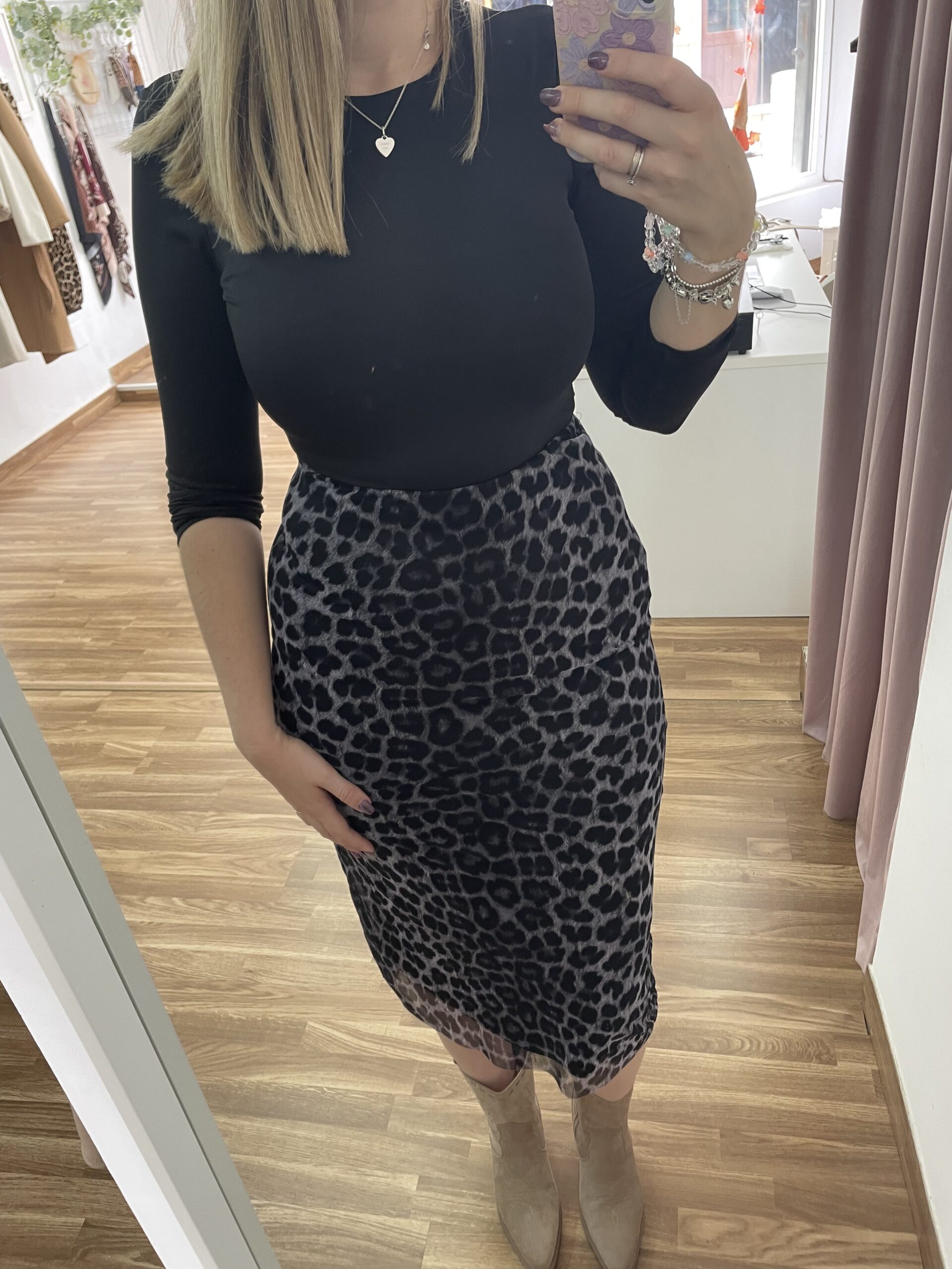 Falda de tul con estampado de leopardo en negro y marrón Talla única (max.44)