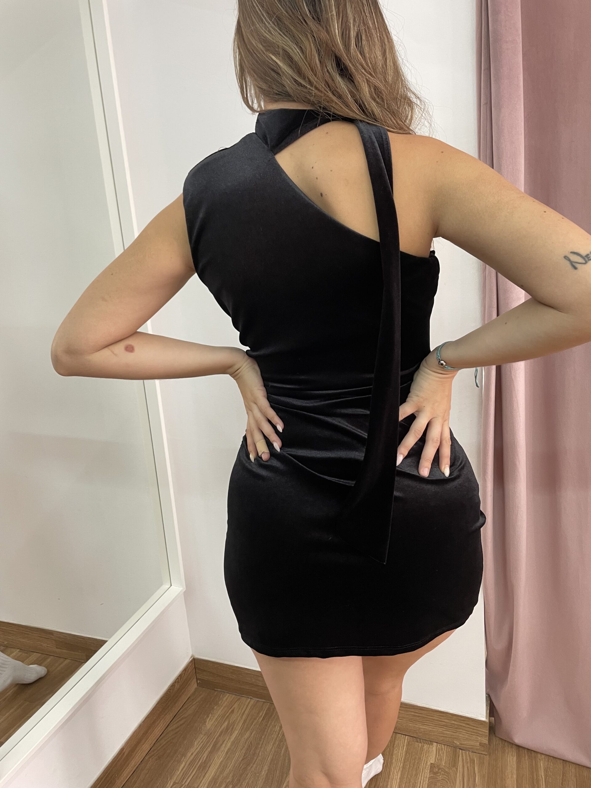 Vestido de terciopelo, con fruncido en la parte de la falda. Talla única (34/40)