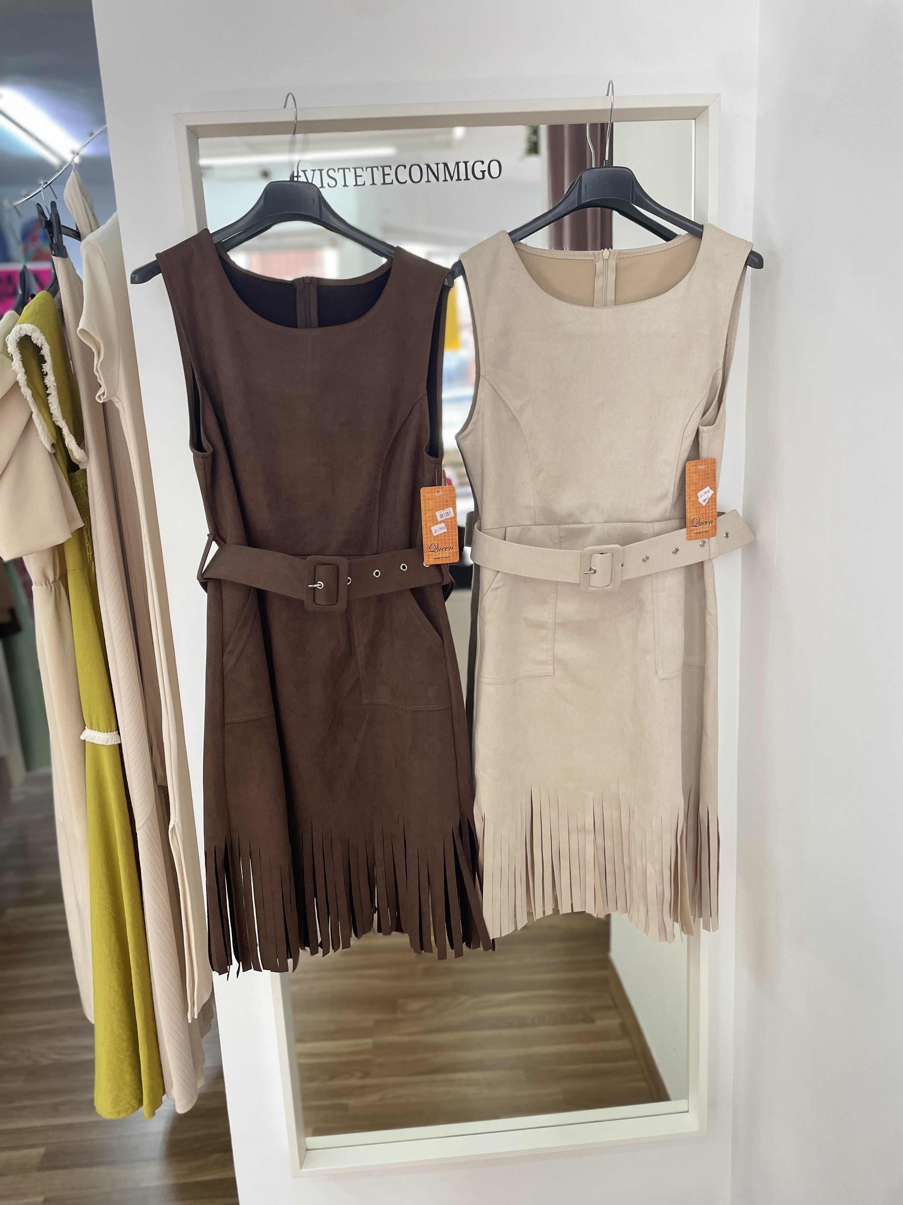 Vestido de ante corto con flecos
